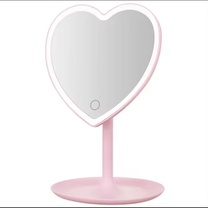 ESPEJO DE MESA CON LUZ LED CORAZON